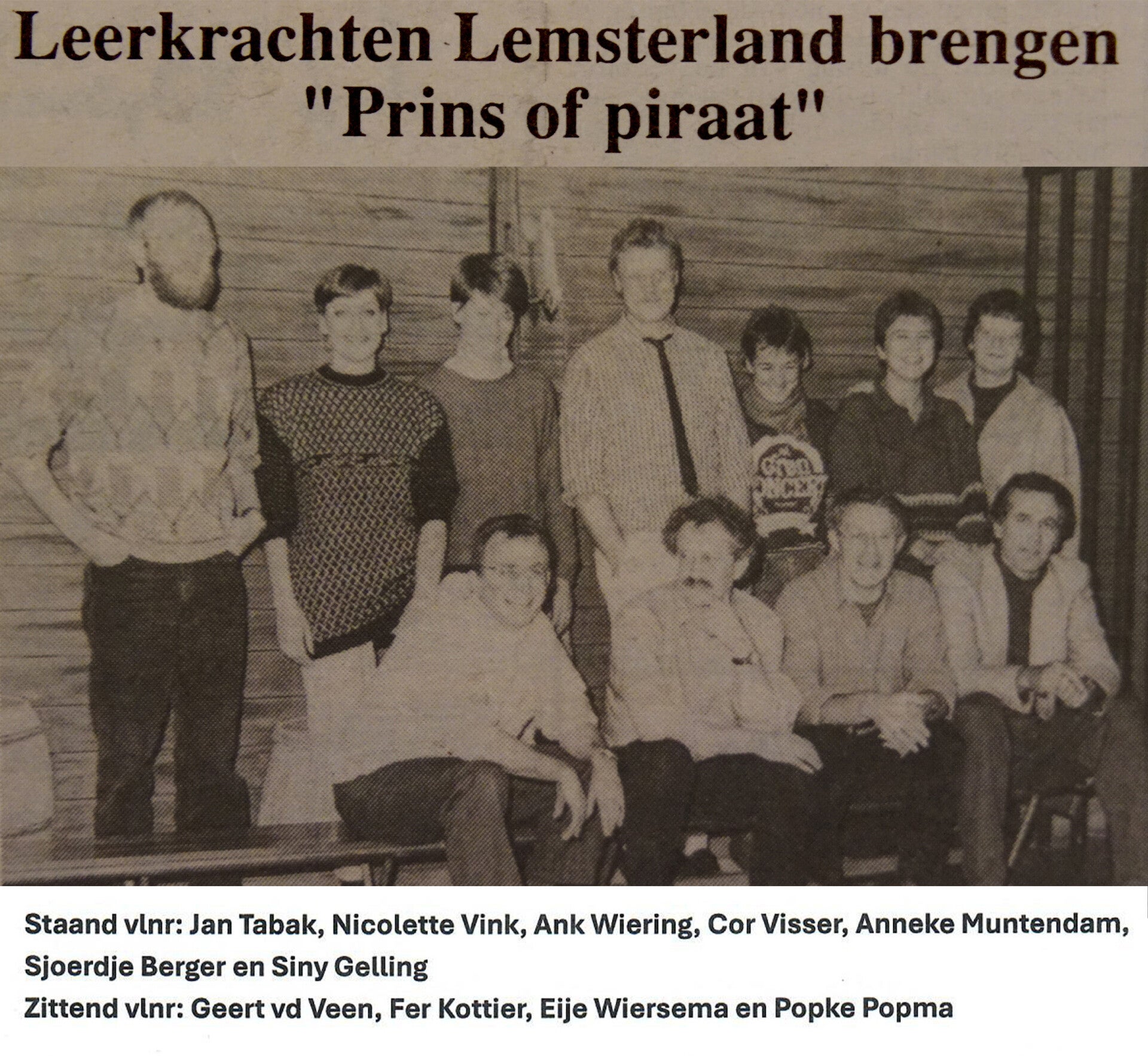 Ja en dan is het alweer eind november en mogen we weer onze kunsten vertonen op het toneel, voor alle basisschoolleerlingen en brugklasleerlingen van de gemeente Lemsterland zo’n 700 stuks en dan in de avond nog een keer voor belangstellenden. Het sprookje heet ditmaal “Prins of Piraat”. Het sprookje werd ditmaal geschreven door Geert van der Veen, Fer Kottier en Popke Popma.