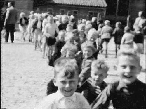 Auke Bless, het eerste donkere jongetje in Lemmer, speelde altijd met Tjitske Wever, dat is het blonde meisje.
