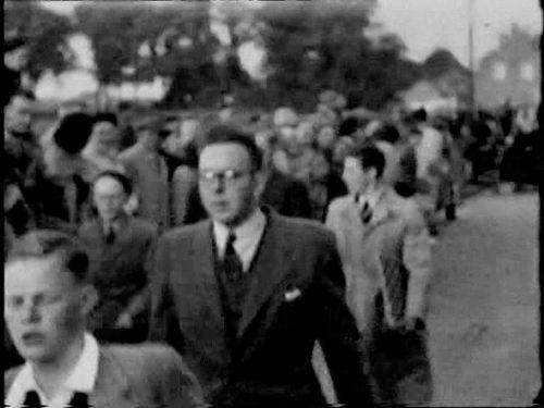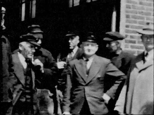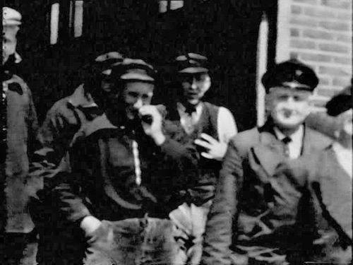 In het midden is Klaas de Boer te zien, destijds afslager. De man met de hoed rechts is Pier Meijer die directeur was.