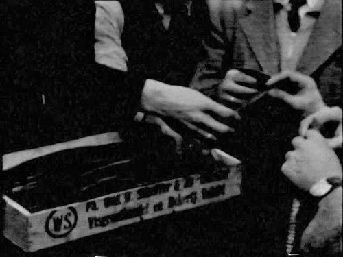 Visafslag met links, Jan Bijma (pake van Gauke Bootsma) in het midden met wit overhemd is Andries Scheffer.