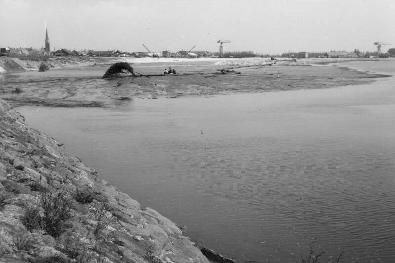 1960: Nu water, straks industrieterrein. Op de achtergrond het oude strand