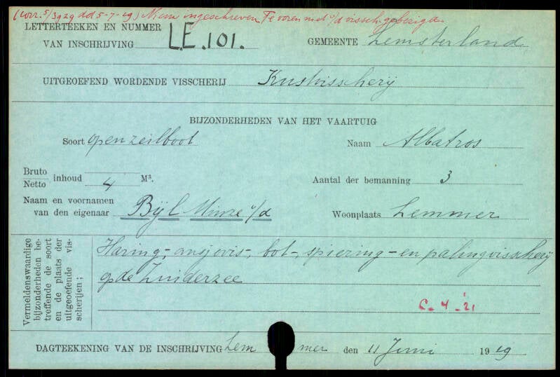 - LE 27: (Eerder LE 101) Eigenaar: Hermanus (Manus) Wouda. Bijnaam: Manus van Wouda. Woonplaats: Lemmer. Soort: Botter. Naam Schip: "De Jonge Jan" tot 1913 Werf: Gebr. de Boer. - LE 27: Eigenaar: Liekele Poepjes. Bijnaam: Zwarte Liekele. Woonplaats: Lemmer. Soort: Botter. Naam Schip: "De Jonge Jan tot 1913" Werf: Gebr. de Boer.