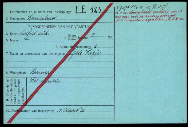 - De Lemster vissersvloot van ± 1915 volgens Jan Wouda: (later LE 23) Eigenaar: D. Coehoorn. Woonplaats: Lemmer.