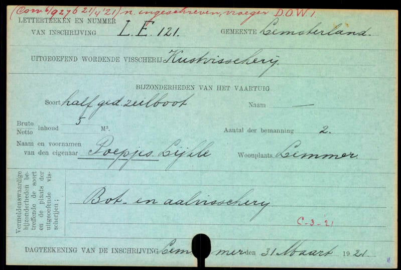 - Opm: 1921-1925: open zeil-/of roeiboot z.n. van Yge Visser