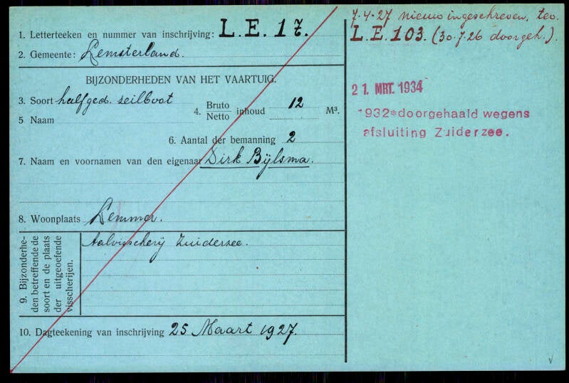 - Opm: voordien als sloep in Vollenhove; {1901-1913 LE 17: aak Dolphijn van Sake de Rus.