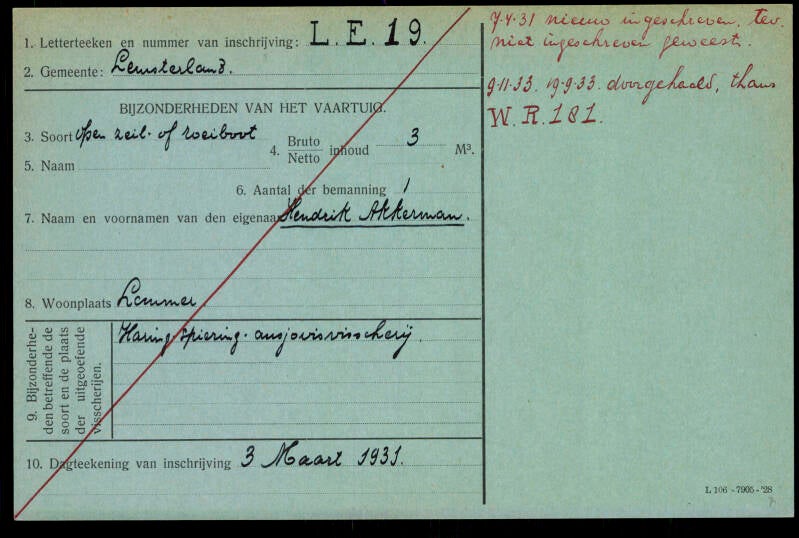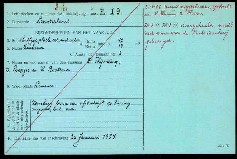 - De Lemster vissersvloot van ± 1915 volgens Jan Wouda: LE 19: Eigenaar: Lieuwe Visser. Woonplaats: Lemmer. Soort: Botter. Naam Schip: "De nieuwe Zorg" - LE 19: Eigenaar: D. Thijsseling, D. Poepjes, en W. Bootsma. Bijnaam: De drie Jantjes. Woonplaats: Lemmer. Soort: Botaak vt 40. Naam Schip: "De drie gezusters" Bouwjaar: 1899 Werf: Gebr. de Boer. - LE 19: Eigenaar: Jan. R Visser. Woonplaats: Lemmer. Soort: Aak vt 41. Naam Schip: "De Jonge Jan" Bouwjaar: 1900 Werf: Croles IJlst. - LE 19: Eigenaar: Poppe de Rook. Woonplaats: Lemmer. Naam Schip: "De Judith"