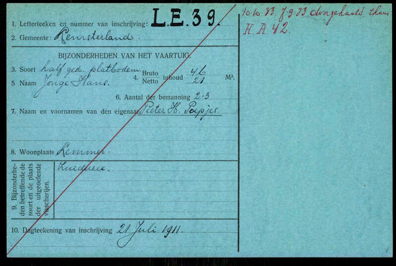 - Naam schip: LE 39 De Jonge Hans