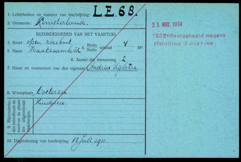 - Opm: woonplaats: Oosterzee; "Er wordt gevist met botnetten, aalfuiken en visfuiken tussen Lemmer en Kuinre"
