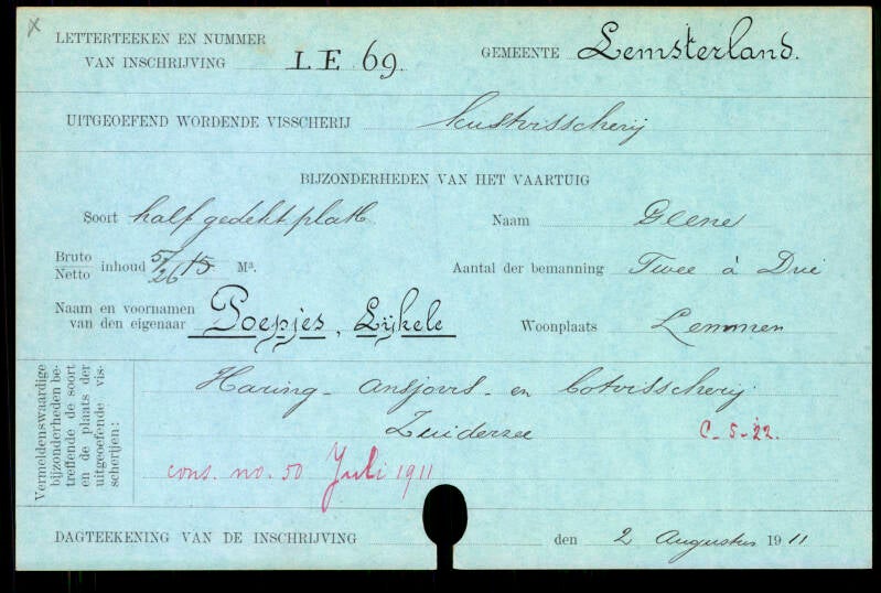 - Naam schip: LE 69 "Schön wiederein zal nooit de leste zijn"