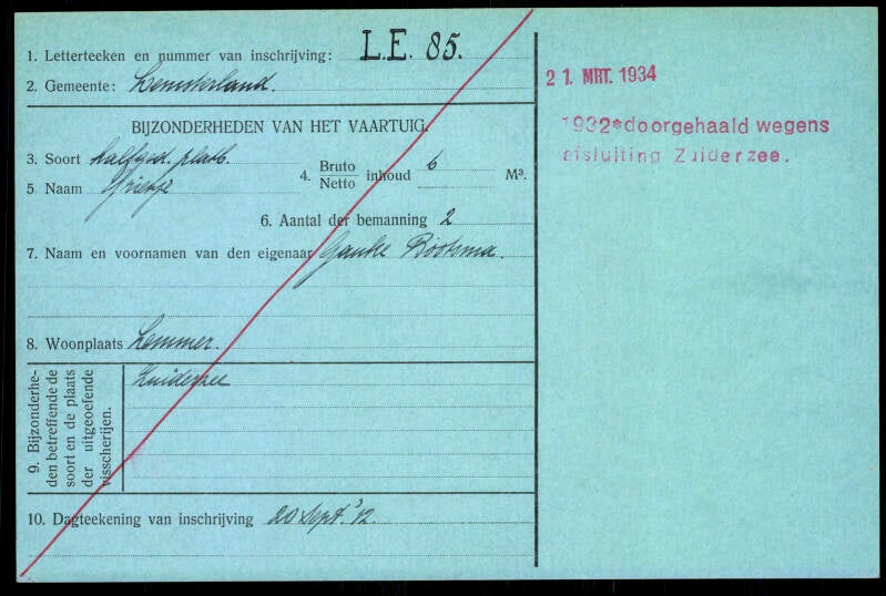 - Gauke Bootsma, LE 85 Gauke jr. ging weer terug naar De Lemmer en nummerde daar LE 87.