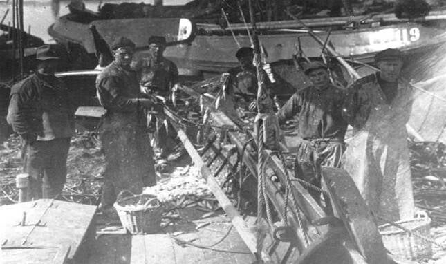 Poepjesen die visten vanuit Lemmer op de Zuiderzee