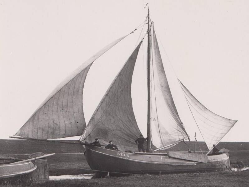 Volgens het consent uit Makkum is de STL 9 van Poepjes hetzelfde schip als de LE 119 en de WON 119. Dat is mogelijk, maar de STL 9 op deze foto is helemaal geen aak, maar een botter. Er kunnen natuurlijk wel verschillende schepen als STL 9 zijn geregistreerd. (Foto: collectie Dick van Dijk, Lemmer)