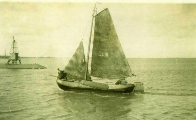 Lijnentekening van de visaak LE 10. De vorm is vergelijkbaar met die van het aakjachtje Orion, van ongeveer dezelfde afmetingen. Opvallend is de bescheiden zeeg, vergelijkbaar met die van een visaakje voor het binnenwater.