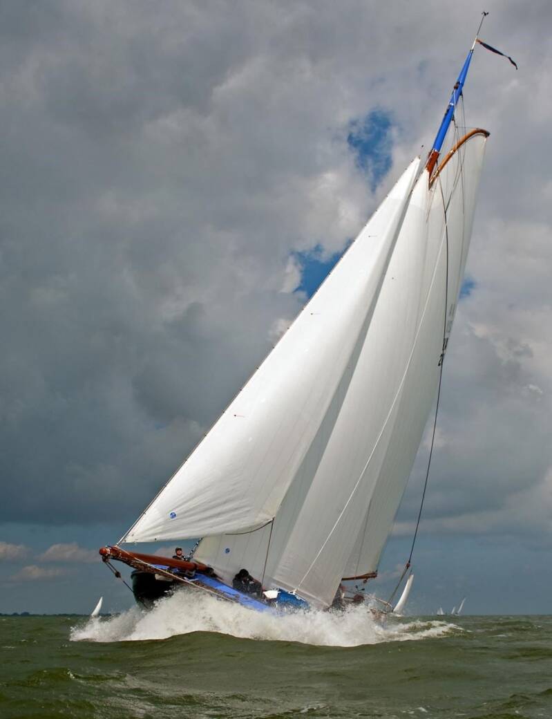 De Lemsteraak VA 165 (‘Zuidwester’) Deze hellinghoek is voor een moderne aak niet fataal. (Foto: Jan Heuff)