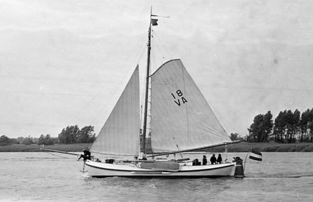 De Groene Draeck in 1959, overstag gaand bij een matige wind.