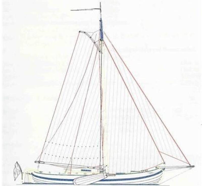 Links het zeilplan van ‘De Groene Draeck’, een typisch voorbeeld van een traditioneel laag en breed tuig, en rechts de wijze waarop bij Hoek Design in Edam 50 jaren later een moderne aak getuigd wordt. De mast bijna in het midden van het schip, met een smal, hoog grootzeil, de gaffel steil gepiekt en een brede fok die aansluit bij de deklijn. Het moderne tuig is niet alleen effectiever (bij gelijk zeiloppervlak), maar komt ook meer overeen met de tuigage van een vissersaak.