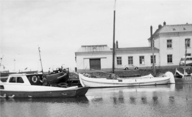 Stavoren, jaren vijftig. De Nettie aan de kade bij de sluis, voor het toenmalige NS station. Tijdens de oorlogsjaren lag ze afgezonken in de haven van Makkum, wat het schip uiteraard geen goed had gedaan. In 1970 kreeg de Nettie bij scheepswerf Volharding, van waar deze foto is genomen, een dubbeling van het vlak. De lange houten koekoek in het midden van het kajuitdek, voor het afschieten van mijnen, is verwijderd. (Foto boven: collectie Anton van der Werff, oudwerfbaas Volharding)