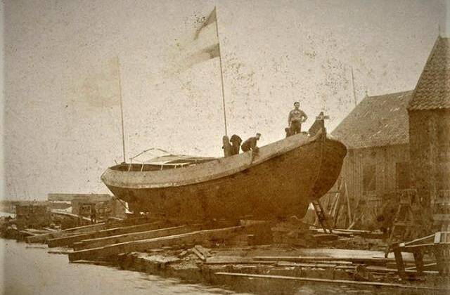 Boven: Makkum, 1911. De Breezand in aanbouw bij Zwolsman Sr.
