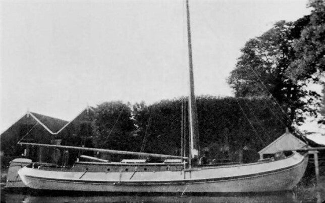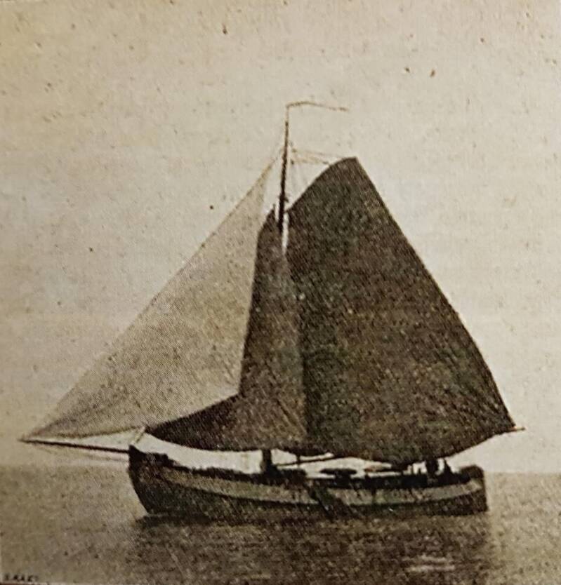 De ‘Elisabeth’ onder zeil in 1901. De aak was boeiergetuigd met fok en kluiver en een breed grootzeil. (Foto: Weekblad ‘Nederlandsche Sport’. Bron: S. Schermerhorn)
