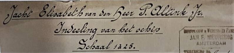 In 2020 schreef Simon Schermerhorn in de Spiegel der Zeilvaart over de zeiler Pieter Altink Jr. (1849-1904), medeoprichter, penningmeester en president van Zeilvereniging Het Y, die in 1901 een ‘jacht van ijzer, model botaak’ liet bouwen bij J.J. Croles in IJlst. (SdZ, 2020/8) Dit jacht van ijzer werd boeiergetuigd, zoals op bovenstaande foto te zien is. Ook het plan voor de binneninrichting van de Elisabeth werd door Schermerhorn teruggevonden. We zien een voor die tijd moderne jachtinrichting, volgens een basispatroon dat de hele 20e eeuw niet wezenlijk veranderde.