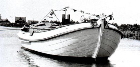 Amsterdam, 1938. Lemsteraakjacht ‘Schollevaer’, ontwerp H. Kersken. De kajuit is tot ver op het voordek doorgetrokken. (Foto: Gebroeders De Vries, Scheepswerf De Vlijt)