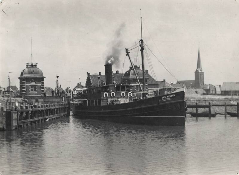 Franke Hoekstra: De welbekende sleepboot Fimmie sleept het Lemster skûtsje.