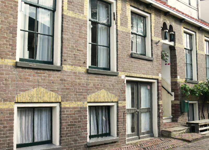 De Lemmer, It Leeg met de nettenbaan van Jan Pen in het souterrain onder de vijf arbeiderswoningen.