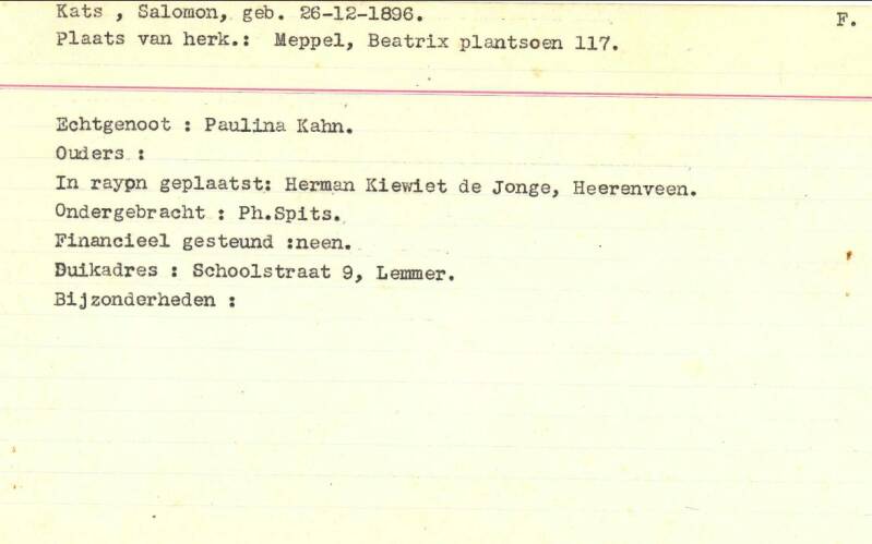 Onderduik-kaarten, van in Lemmer geplaatste personen