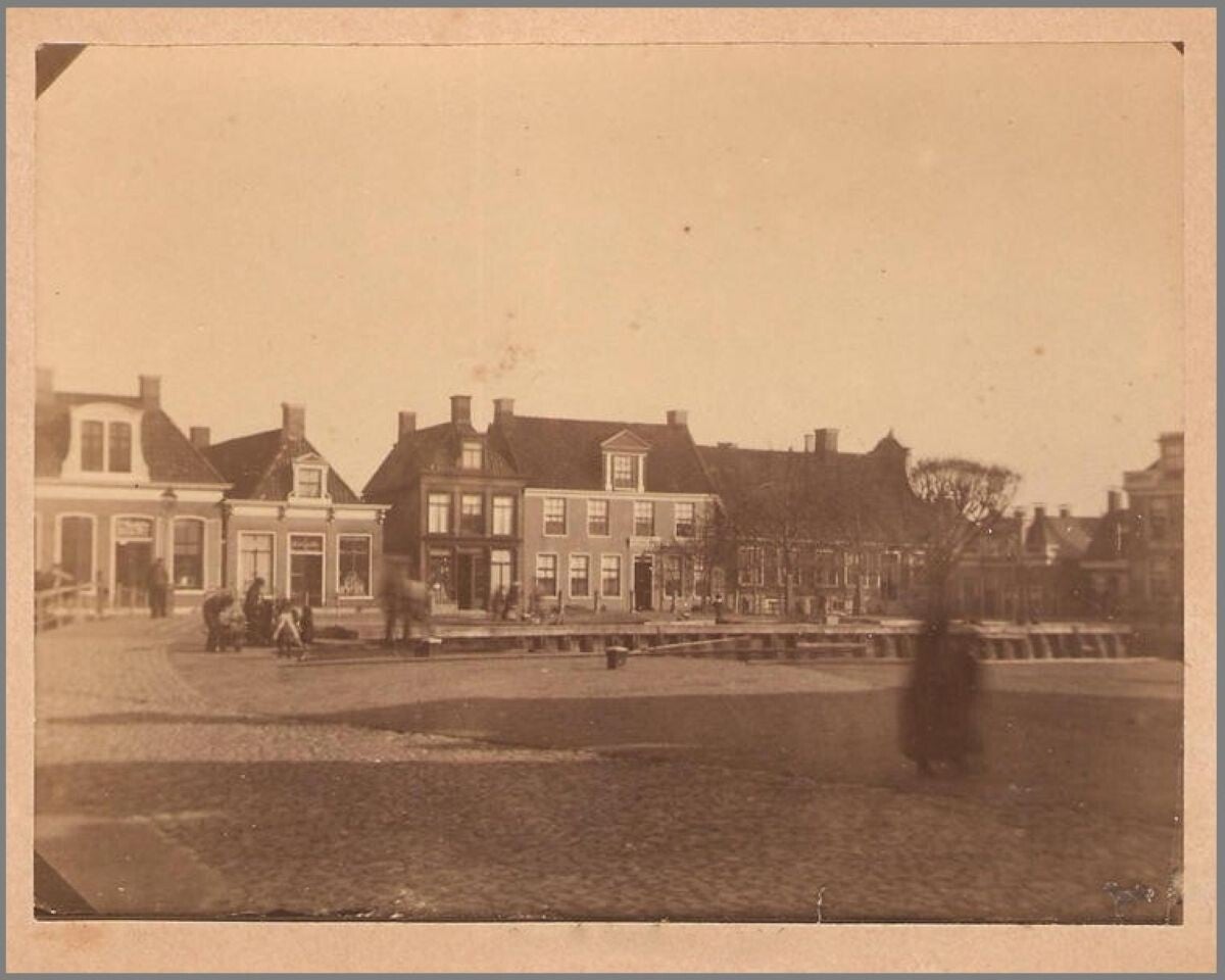 Leeuwke Bootsma: Dit is een foto van de Markt, de huizen moesten wijken voor de ombuiging van de Rien. Dank zij die verandering hoefden de schepen nog maar door èèn brug om de binnenhaven in te varen in plaats van twee bruggen.
