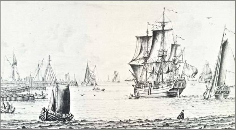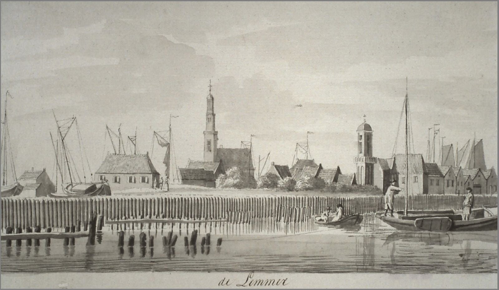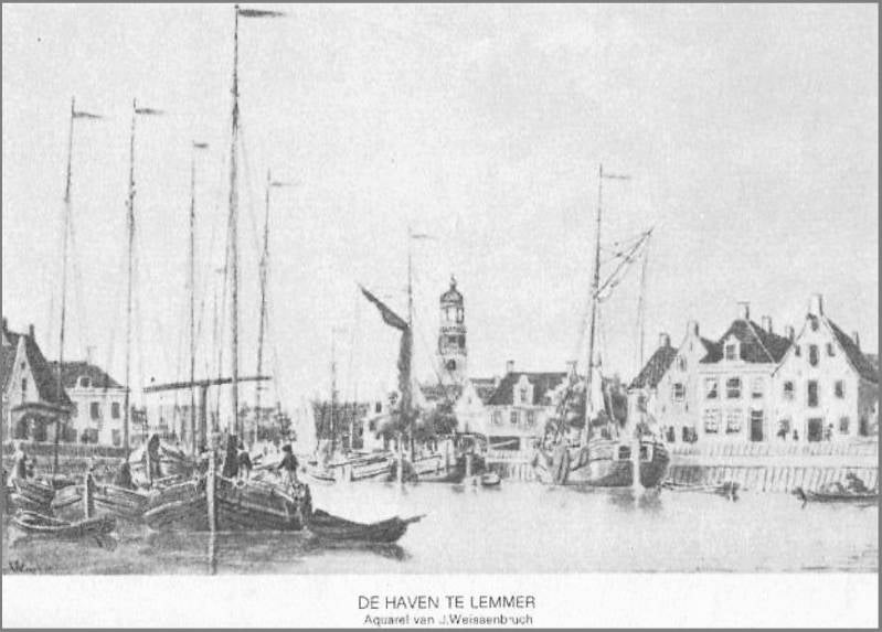 Gezicht op de Zijlroede te Lemmer, door P.I. Portier c.a. 1760. Links het spiegeljacht van jhr. S.H.R. Roorda van Eysinga te Joure.