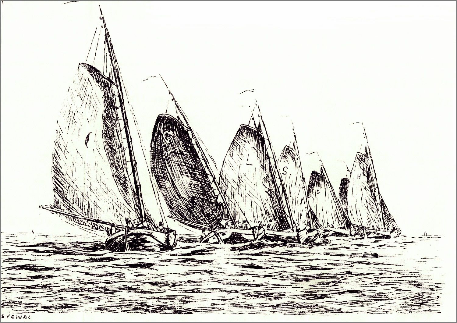 Een Engels koolschip voor de haven van Lemmer, rechts op de voorgrond een spiegeljacht