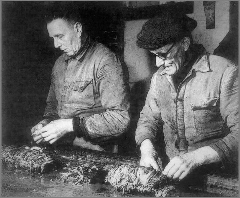 Nu we toch nog even in de herinneringen zitten, zo werd mij eens gevraagd naar de behandeling van de ansjovis in het verleden. Dat ging als volgt, eerst werd de vis gekopt waarbij zoveel mogelijk het grim er werd uit getrokken. Dan werden ze in een water bak gedaan. De man die ze moest warren kreeg lange wollen wanten aan, de tweede man schepte er ruw zout op.