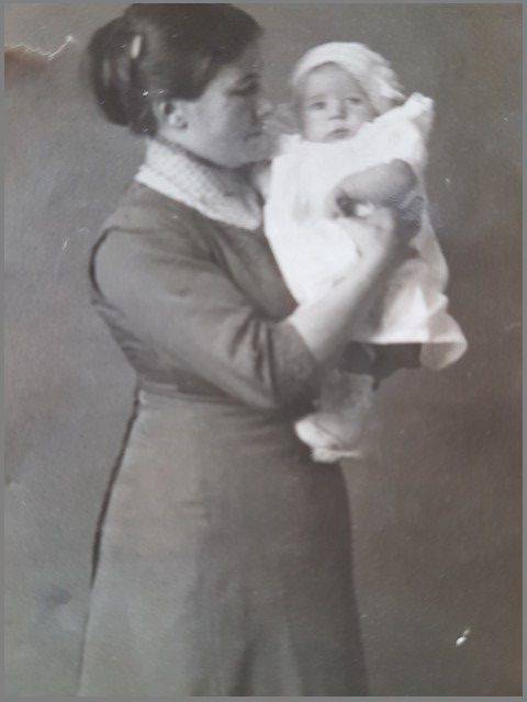 Foto van: Clara Kroes: Als moeder met kind, waarschijnlijk mijn vader Jan