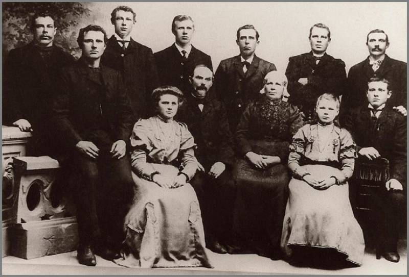 De familie Poepjes uit Lemmer, in 1909. Bovenste rij: Lykele, (de vader van Siebe) Douwe, (Douwe is viskoopman geworden) Klaas, (Klaas had de botter LE 18) Pieter, (Pieter had de LE 39) Jan (Jan had de LE 119) en Johannes Poepjes, (Johannes had de LE 57). Vooraan: Arend (Arend viste met een grote aak), Klaasje, pake Hans, beppe Geertje, Renskje, Jacob Poepjes (Jacob is de enige die boer geworden is). Lykele,(LE 69) Arend en Jacob waren bekende schaatsenrijders.