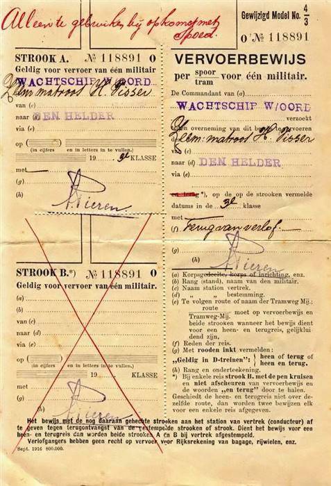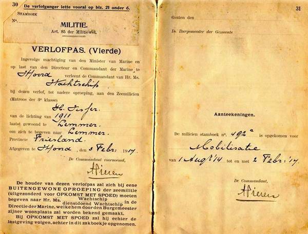 Hij zat dienstplichtig bij de marine in 1911 en werd in 1914 tot 1917 gemobiliseerd voor de eerste wereld oorlog. Nederland was toen neutraal maar had wel alle leger onderdelen paraat.