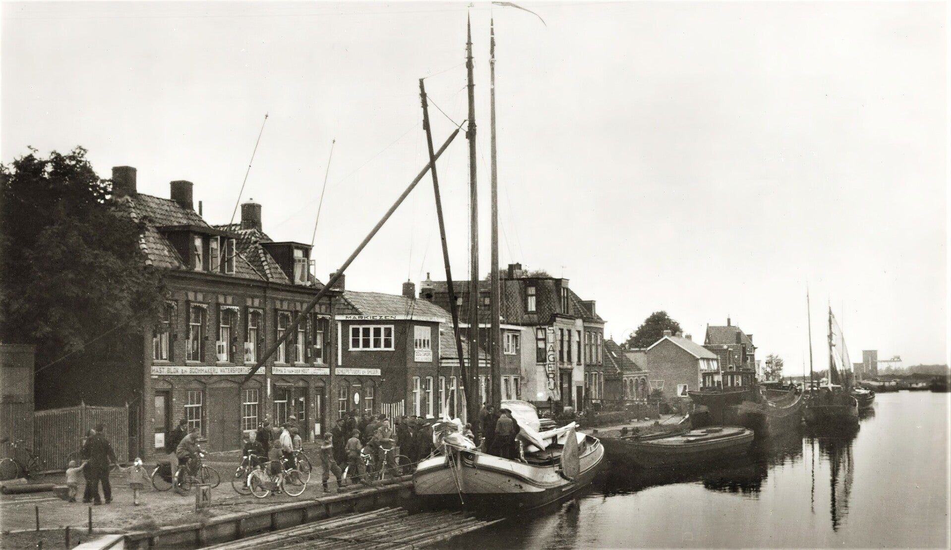 Had ik aanvankelijk nog hoop om bekenden te zien, al ras realiseerde ik mij dat dit natuurlijk niet kon. Ik was toen al zeventig (nu 78) en dan zouden mensen die ik heb gekend al dik in de 90 of over de 100 moeten zijn geweest. Ergo, ergens met spijt, maar ik was te laat ! Toch was het leuk om het een en ander aan mijn vrouw te laten zien en haar er over te vertellen. Toen wij de plek voorbij reden waar ik ooit als jongen gefascineerd toekeek hoe bij de firma V.d. Neut een houten mast geschaafd werd (met zo’n haalmes) zag ik een echtpaar in hun tuin aan het werk. Ik stopte en wij raakten gezellig aan de praat over vroeger. Van hen kreeg ik het adres van Spanvis en dus van Roelie. Ik kwam er niet meteen aan toe contact met haar te zoeken. Nu heb ik dit wel gedaan en zij nodigde mij uit mijn herinneringen met haar te delen en wellicht ook met lezers onder jullie. . . .dus vooruit, ik begin maar gewoon. Oordeel maar zelf !