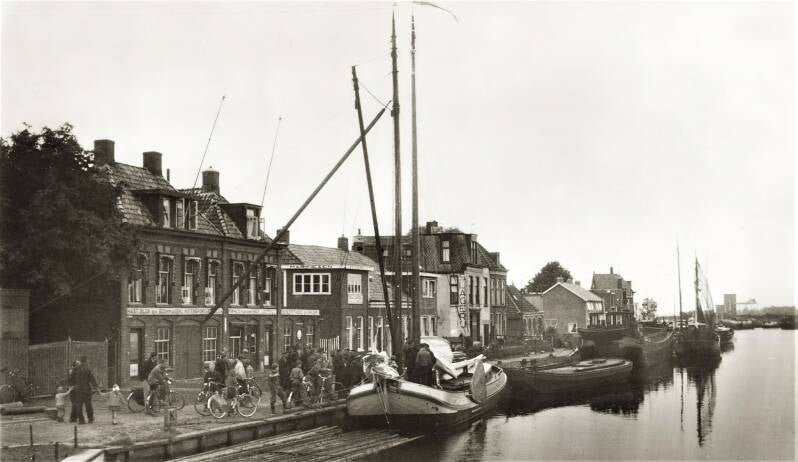 Tegenover de Schans, dus aan de overzijde van de Lemster rijn, woonden goede vrienden van mijn oom en tante, de familie Van Brug (meen ik), tante Stien en oom Wiebe. Hij had dacht ik een smederij. Tante Stien (zo was zij voor mij) was evenals mijn tante Jans een rasechte Amsterdamse en beiden plaagden hun mannen geregeld met allerlei opmerkingen, zoals “Lemmer een achtergebleven gebied” e.d., wat dan weer achtervolgingen door het huis teweeg bracht. Het waren soms net kinderen met hun spel wie krijgt het laatste tikkie. En ik maar lachen ! Op een winterdag verzuchte mijn tante nog eens “wat moeten we nou vandaag eens eten?” Daarop stelde mijn ome Jan voor “Neem nog eens van dat groene goedje!”. Het duurde even voor mijn tante er achter kwam dat hij spinazie bedoelde! Nou, dàt heeft hem lange tijd achtervolgd!
