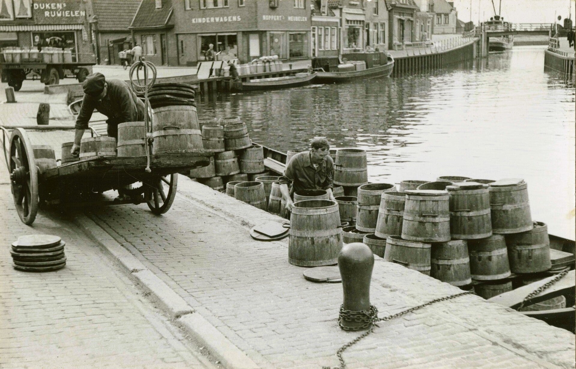 Het tweede verhaal speelde zich af in de winter, waarbij een grote platte handkar met daarop vele volle tonnen over de brug in het centrum geduwd moest worden. Maar het gladde wegdek stond dat niet toe, waarop enkele mannen te hulp schoten en - daarbij aangemoedigd door vele toeschouwers - de kar met een reuze vaart over de brug wisten te krijgen. Afremmen lukte niet meer en alles ging over straat! Het gemeentehuis sloot de luiken voor een week, aldus mijn oom.