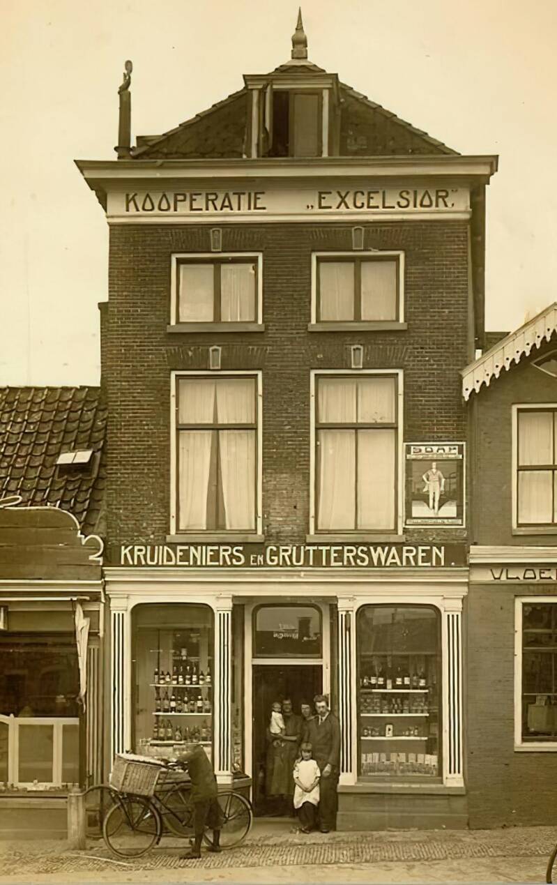 2 detailfoto's van bovenstaande Coöp. op de Markt te Lemmer.