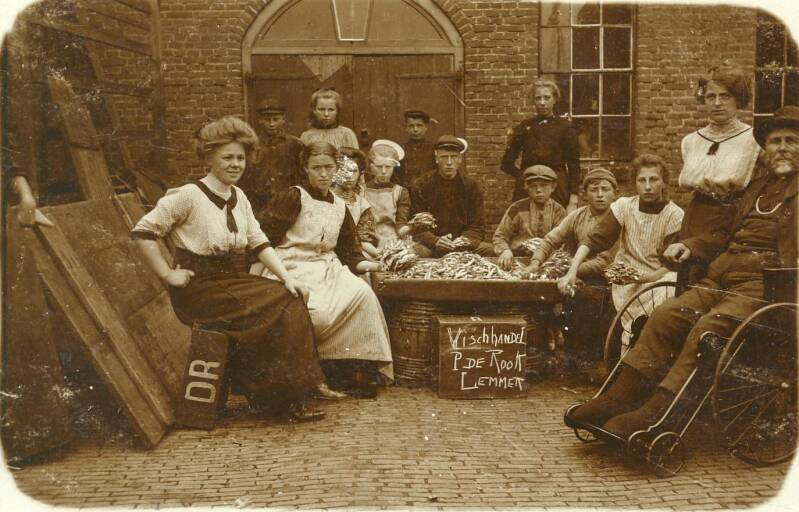 The lumber yard dates back to 1795. They produced mostly packing crates for Lemmer companies, to ship smoked or potted fish etc. Pake Poppe was a major customer, using the crates to ship his products all over Holland, Germany and England. I still have one side of an old crate that Pake used for dispatching his fish products. Peter has the other side. Both are stamped with the firm’s name: Fa. P. DE ROOK, LEMMER. VISCH HANDEL & ROOKERIJ. The Lumber yard doesn’t exist anymore, though it was still going on strong after WW II.
