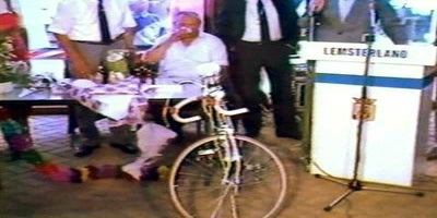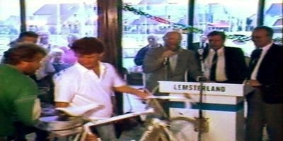 Toen zaten wij met een gezellig ploegje in Hotel de Wildeman, en toen heeft een Lemster inwoner Abraham de Jong (bijgenaamd Bram Teut) gezegd, "Sake, ik heb je op een oude racefiets in Lemmer gezien, maar als het Lemsterskûtsje kampioen word, mag je de allerduurste racefiets uitzoeken. Deze persoon Abraham de Jong heeft woord gehouden en ik mocht een fiets uitzoeken bij rijwielhandel van Dijken in de Lemmer. Hiermee zal de wielerronde van Lemmer geopend worden, ik dank U allen hartelijk".