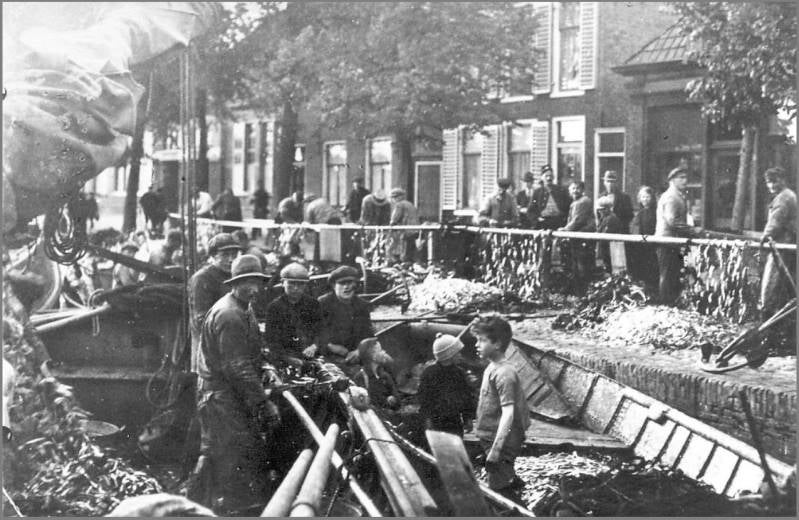 Ze zijn blijkbaar naar zee geweest en hebben veel spiering gevangen, zodat de visjes op de haven uit de netten worden gepluisd. Als de vangst niet al te groot was, gebeurde het pluizen wel op zee. Vanaf de haven vond ook de spiering zijn weg naar de verschillende Lemster rokerijen.