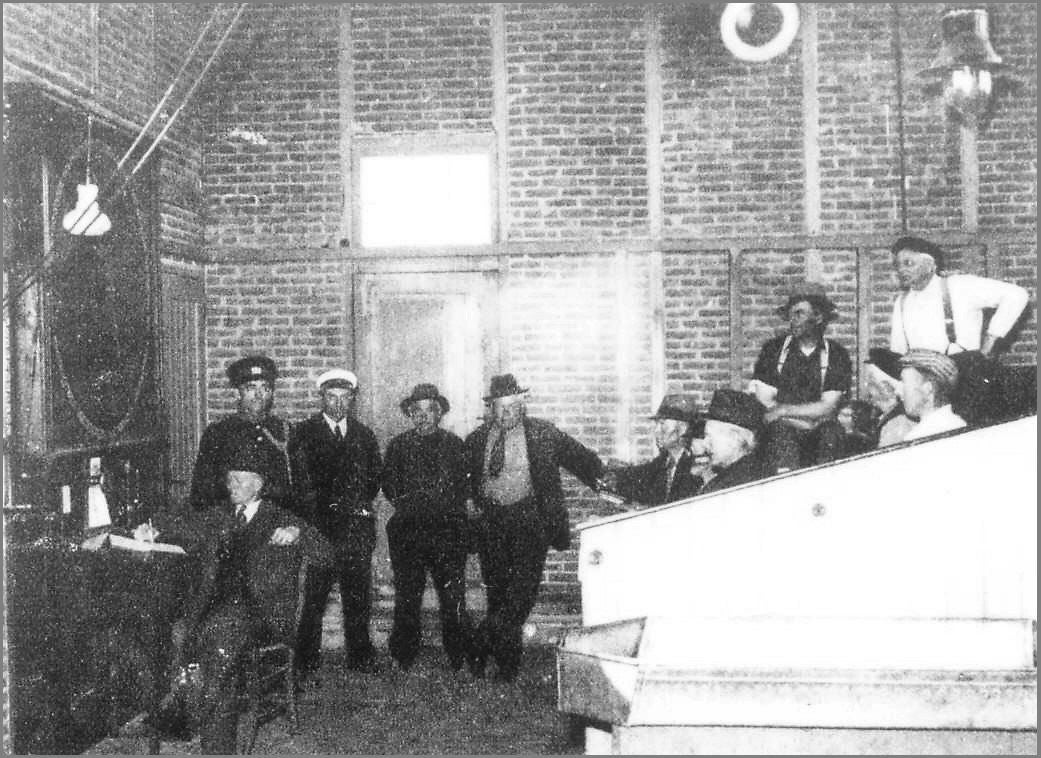 De mannen die achter bij het ronde raam staan...De linker man is Toon Woudhuizen en Marten Feenstra.