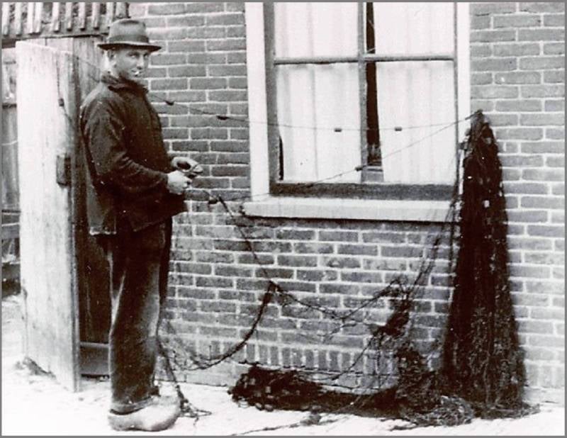Steven de Jong: Wie zien we op deze foto... Van de familie Visser zien we; Pake, zoon en twee pakesizzers. V.l.n.r. Jan Visser (zoon van Marius Visser) onbekend Wieger Spaan (de schoonvader van de Andries Visser op de foto) Tjalling Poepjes (bijnaam: Sjokkie) Jan Stevens Visser (met hoed) rechtsachter: Marius Visser (zoon van Jan Stevens Visser) rechtsmidden: Andries Visser (zoon van Marius Visser) rechtsvoor: Andries Bakker (uit IJmuiden, werkzaam bij de gemeentelijke havendienst in IJmuiden, vandaar de pet)