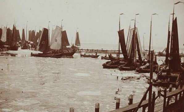 Volendam, 1905. De vloot van grote kwakken zeilt ook in de winter uit. (Foto: Jan Siewers)