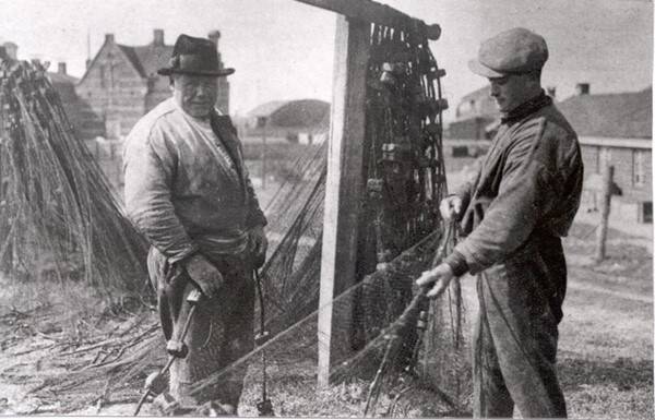 Stavoren, 1927. Staverse vissers met hun staande netten. (Foto: FFG)