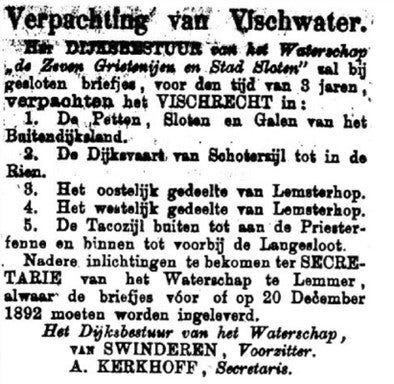 De binnenvisserij, het vangen van vissen op zoet water, was in waterrijk Friesland natuurlijk wel een voor de hand liggende economische activiteit. Al was het maar voor de eigen consumptie. Die relatief onschuldige bezigheid was eeuwenlang een zaak die door overheden en grondeigenaren geregeld en gecontroleerd werd. Wie ergens aan het vissen was, moest toestemming hebben van degene die de visrechten voor dat water bezat, anders pleegde hij een onrechtmatige daad die zwaar werd bestraft. Het onbevoegd vissen werd beschouwd als een misdrijf, omdat de binnenvisserij belangrijk was als middel van volksbestaan en daarom niet naar willekeur door een ieder bedreven mocht worden. In 1857 werd in de Visserijwet nogmaals bevestigd, “dat niemand tot visschen bevoegd is, dan wie voorzien is van een door het openbaar gezag uitgereikte akte. Daarentegen zullen geen kosteloze vergunningen kunnen worden verleend. Inwonende kinderen mogen echter zonder akte visschen met het vischtuig, vermeld in de aan hunnen vader of hunne moeder uitgereikte akte.”